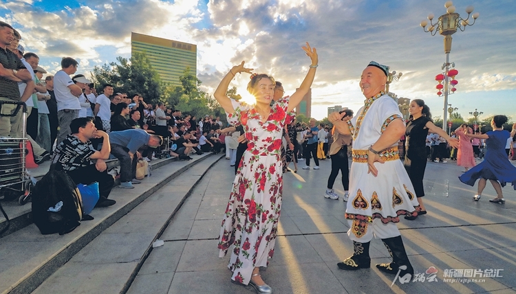 7月3日晚,市民在乌鲁木齐南湖市民广场休闲娱乐,享受夏日时光。天山网-新疆日报记者蔡增乐 摄