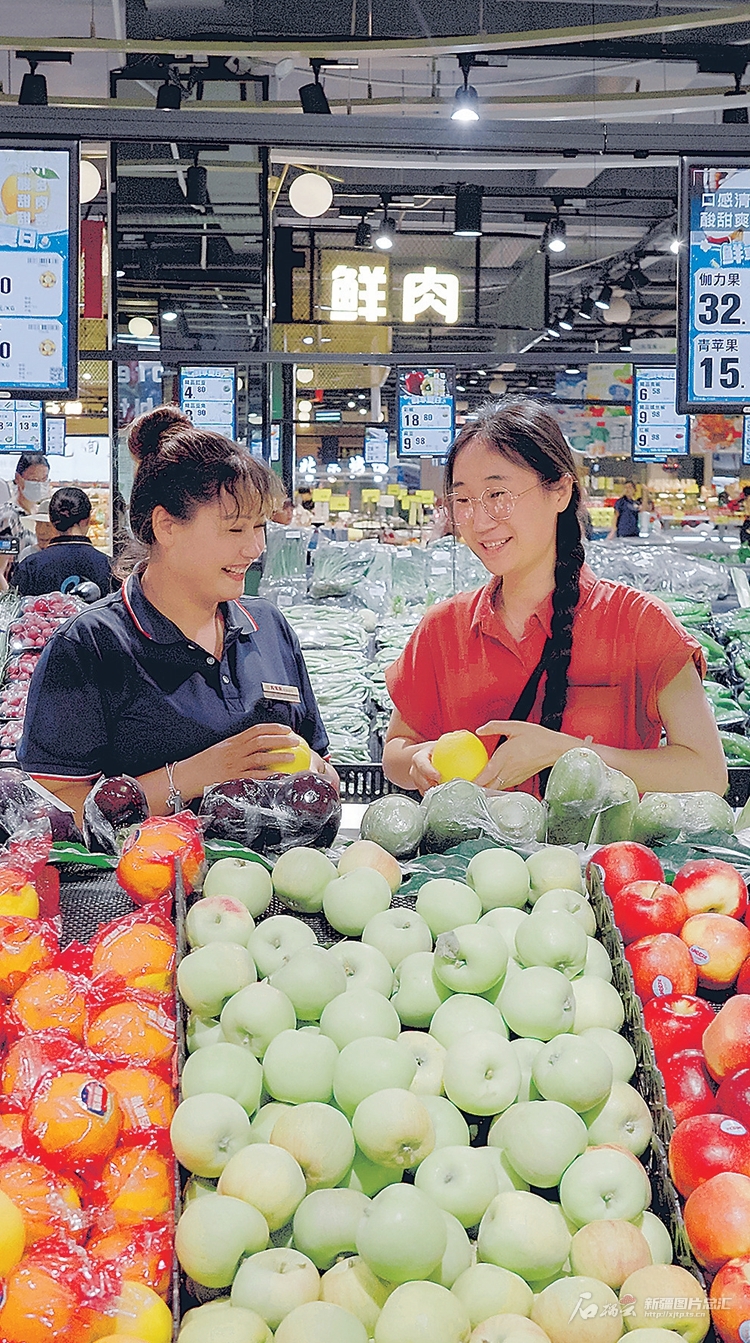 7月3日,市民在和田市一家超市选购水果。甄立民摄