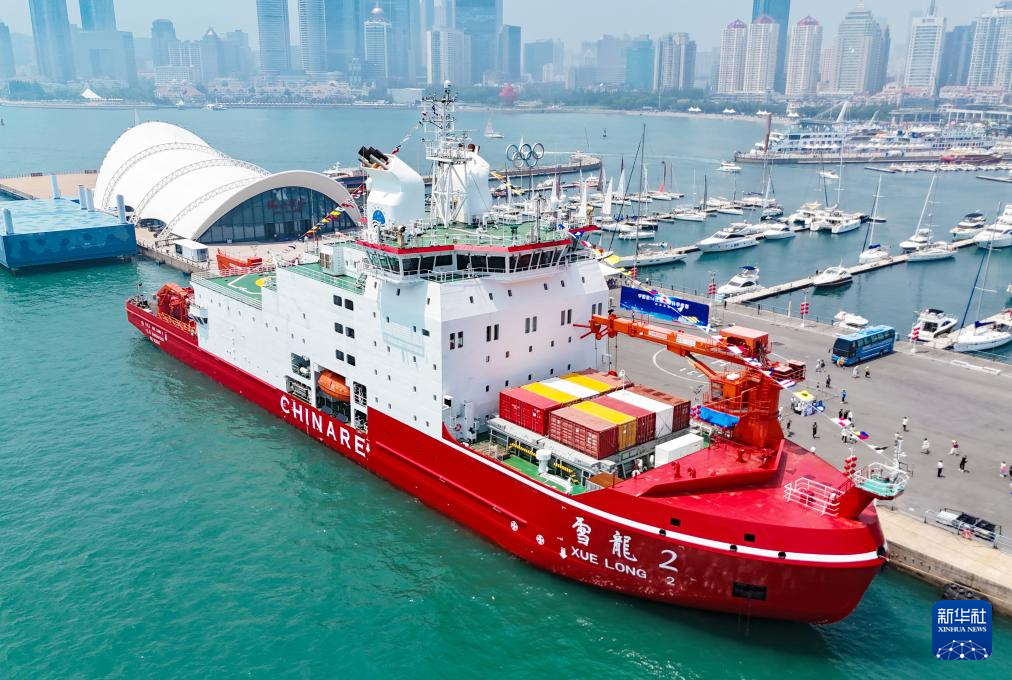 7月3日,“雪龙2”号科考破冰船靠泊在青岛奥帆中心码头。新华社发(张进刚摄)