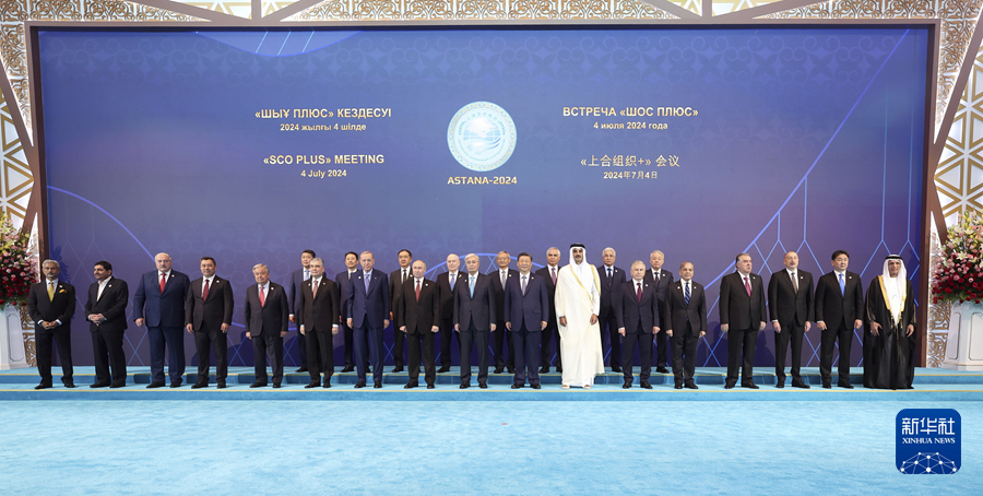 当地时间7月4日下午,国家主席习近平在阿斯塔纳出席“上海合作组织+”阿斯塔纳峰会并发表题为《携手构建更加美好的上海合作组织家园》的重要讲话。