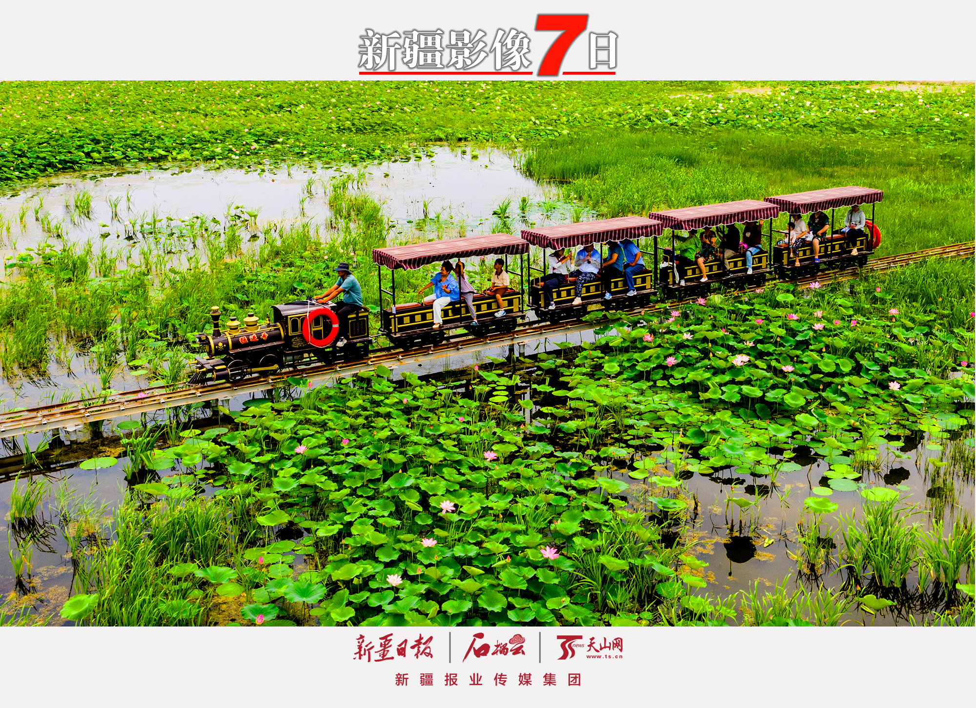7月2日,游客在五家渠市青格达湖旅游风景区观赏荷花。近日,青格达湖景区500余亩荷花及睡莲陆续绽放,清风吹来,香气满园,吸引各地游客前来观赏游玩。李华北 摄