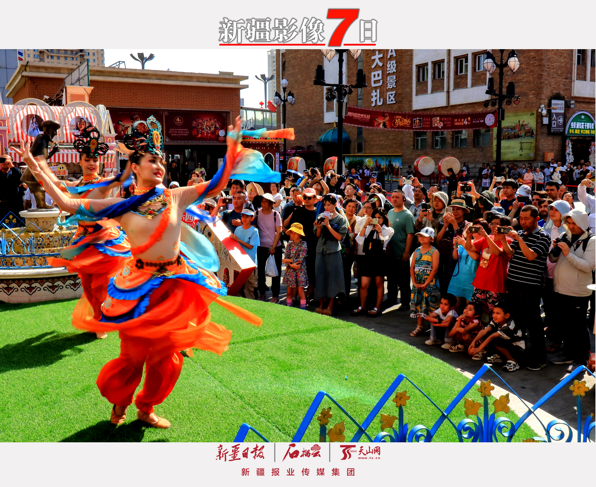 7月4日,演员在新疆国际大巴扎景区表演节目。盛夏时节,各地游客纷纷来到这里赏歌舞品美食,乐享轻松悠闲的美好时光。天山网-新疆日报记者 蔡增乐摄