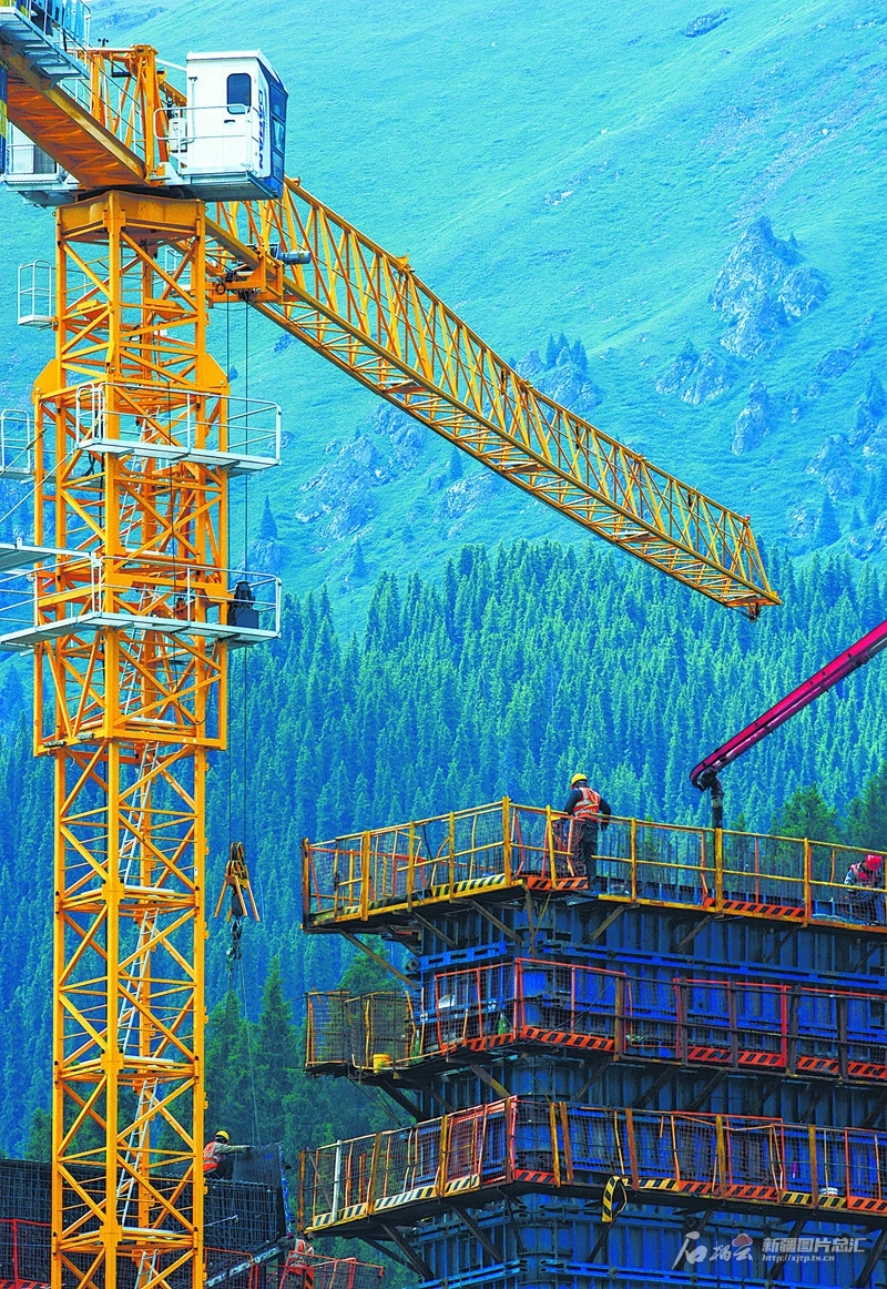7月4日,在位于和静县的巩乃斯国家森林公园G218线那拉提至巴仑台公路项目施工现场,工人们抢抓夏季施工“黄金期”,全力推进建设进度(无人机摄)。G218线那巴公路项目预计2026年通车,建成后将成为连接南北疆的重要通道,也是G30线连霍高速的辅助通道。 □韩峻摄