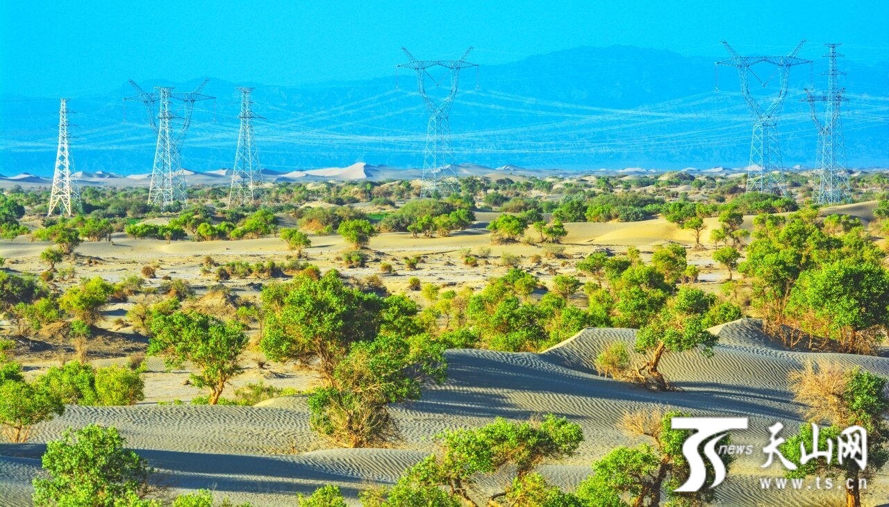 近年来,新疆生产建设兵团第二师塔里木垦区深入推进防沙治沙、天然林保护和生态修复等重点生态工程,生态环境持续向好,荒漠化、沙化土地面积逐年减少,植被覆盖率逐年增加。图为位于塔里木垦区33团的大漠胡杨林(6月21日摄)。 韩峻摄