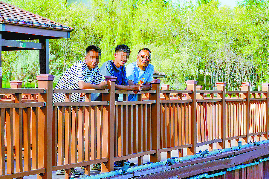 拜合提亚尔(右一)在假期陪伴两个孩子逛公园。