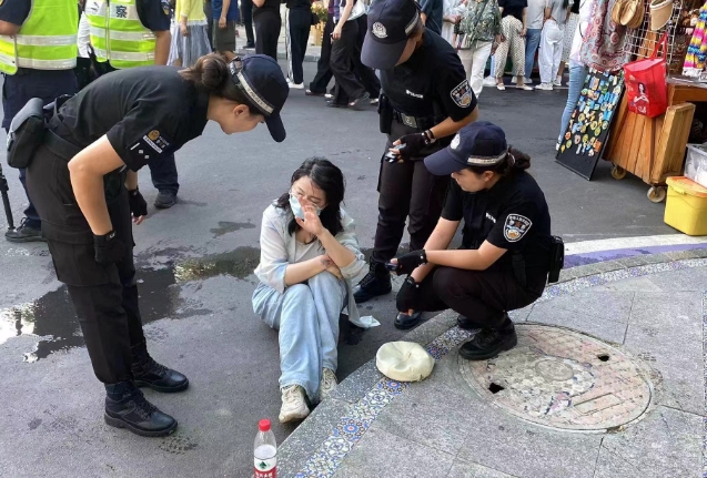 当日14时许,在伊宁市六星街景区,李女士突然出现眩晕、恶心、失去意识等症状。正在景区巡逻的 民警见状,迅速跑上前,将其扶到阴凉处,用冰镇矿泉水为其降温。不一会儿,李女士清醒过来,民警拿出随身携带的藿香正气水让李女士服用,李女士的身体很快恢复正常。