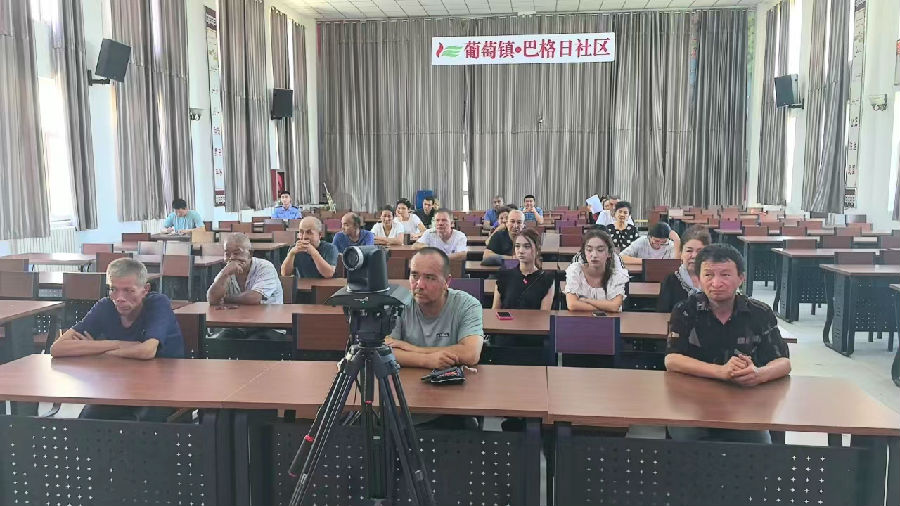 吐鲁番市高昌区葡萄镇巴格日社区视频会现场。通讯员 孙翔摄