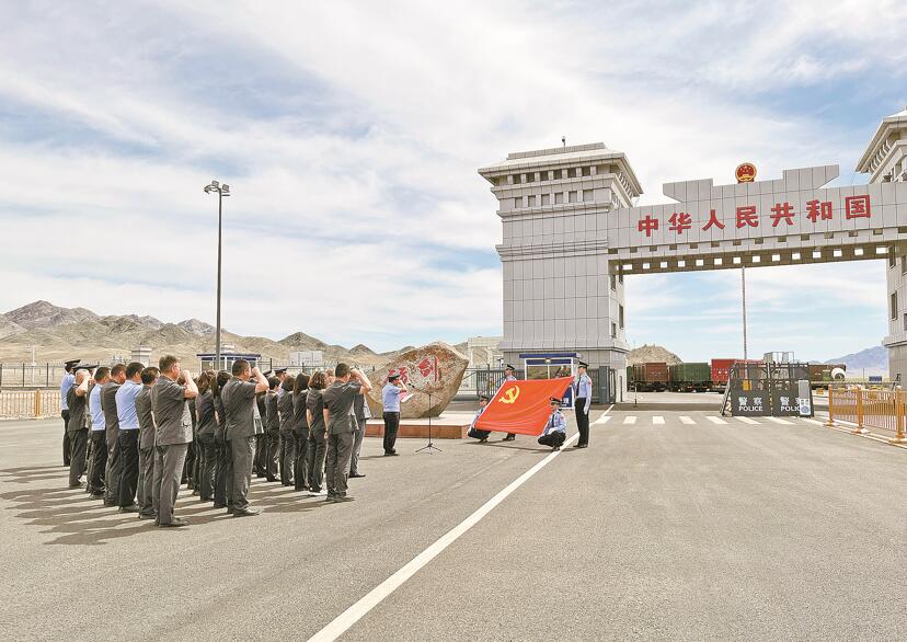 五月二十六日,青河县人民法院联合新疆出入境边防检查总站塔克什肯出入境边防检查站开展主题党日活动。 周荣杰 摄