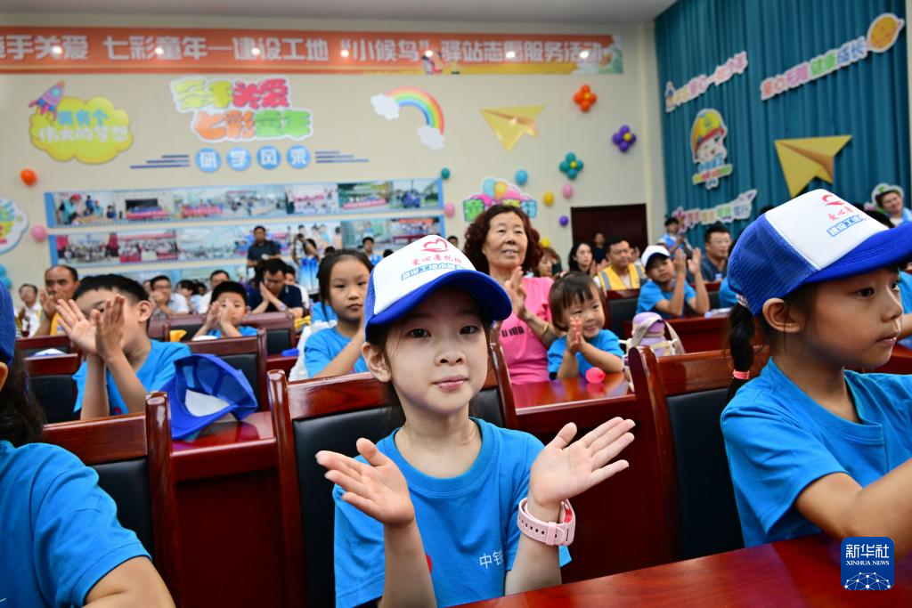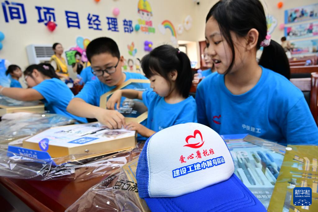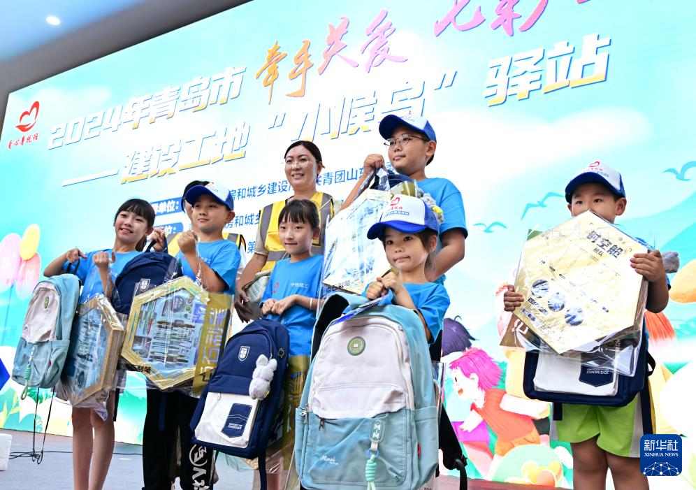 当日,在山东省青岛市中铁建工一项目部,2024年青岛市建筑工地“小候鸟”驿站志愿服务活动启动。暑假期间,来自山西、黑龙江、四川等地的230余名儿童,与坚守在岛城各处建筑工地务工的父母团聚。工地驿站志愿者们将通过开展研学参观、科学课堂、作业辅导、拓展训练等活动,让孩子们度过一个快乐、有意义的多彩假期。