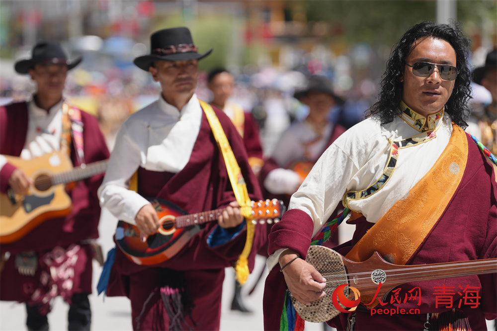巡演现场,玉树马术方队、康巴汉子方队、伊舞方队、藏族弹唱方队、格仲服饰方队、游牧方队、玉树州非物质文化遗产传承人方队等轮番登场,形式多样的非遗展演为广大游客和当地群众带来了一场视觉盛宴。