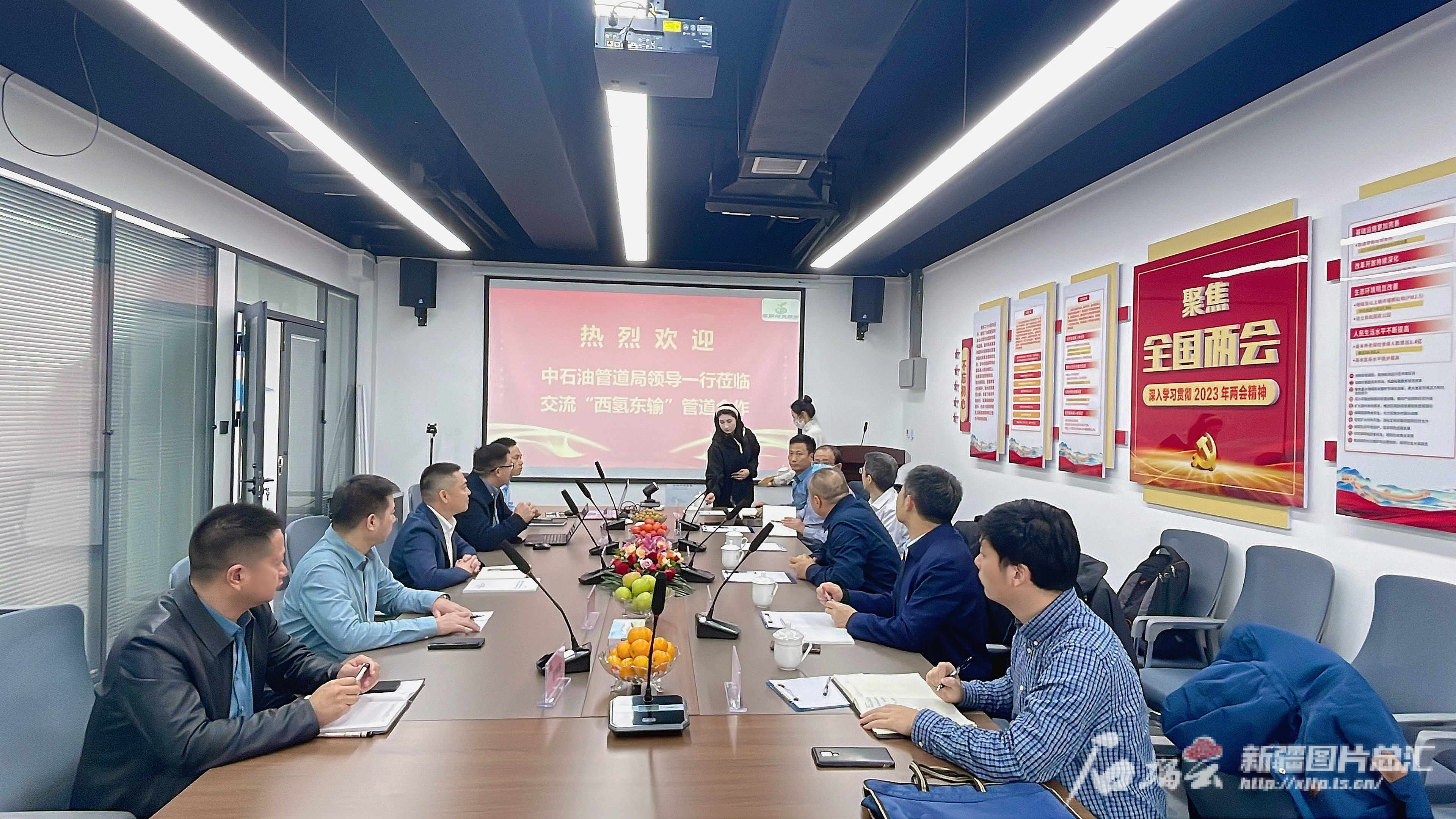 2024年1月,新疆俊瑞凌迈输氢管道有限公司与中国石油天然气管道工程有限公司洽谈“西氢东送”规划布局。新疆俊瑞凌迈输氢管道有限公司供图