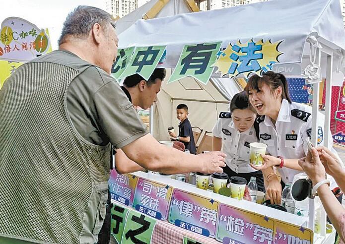 “法”咖、“检”茶、“律”茶、“司”滑拿铁、深水“诈”弹,近日,由乌鲁木齐经济技术开发区(头屯河区)司法局高铁司法所推出的“法治茶饮”在经开万达广场亮相。市民们一边品着香气怡人的“法治茶饮”,一边向司法所工作人员咨询法律问题,在愉快、轻松的氛围中学习了解法律知识。