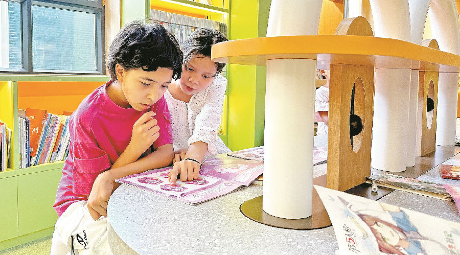 书城包括“共享阅读”“文化展览”“艺文美学”“音乐空间”“亲子阅读”等文化区域,传递喀什市的“今、古、人、文”。图为孩子们在喀什书城岭南阅读空间读书。 海丽 摄