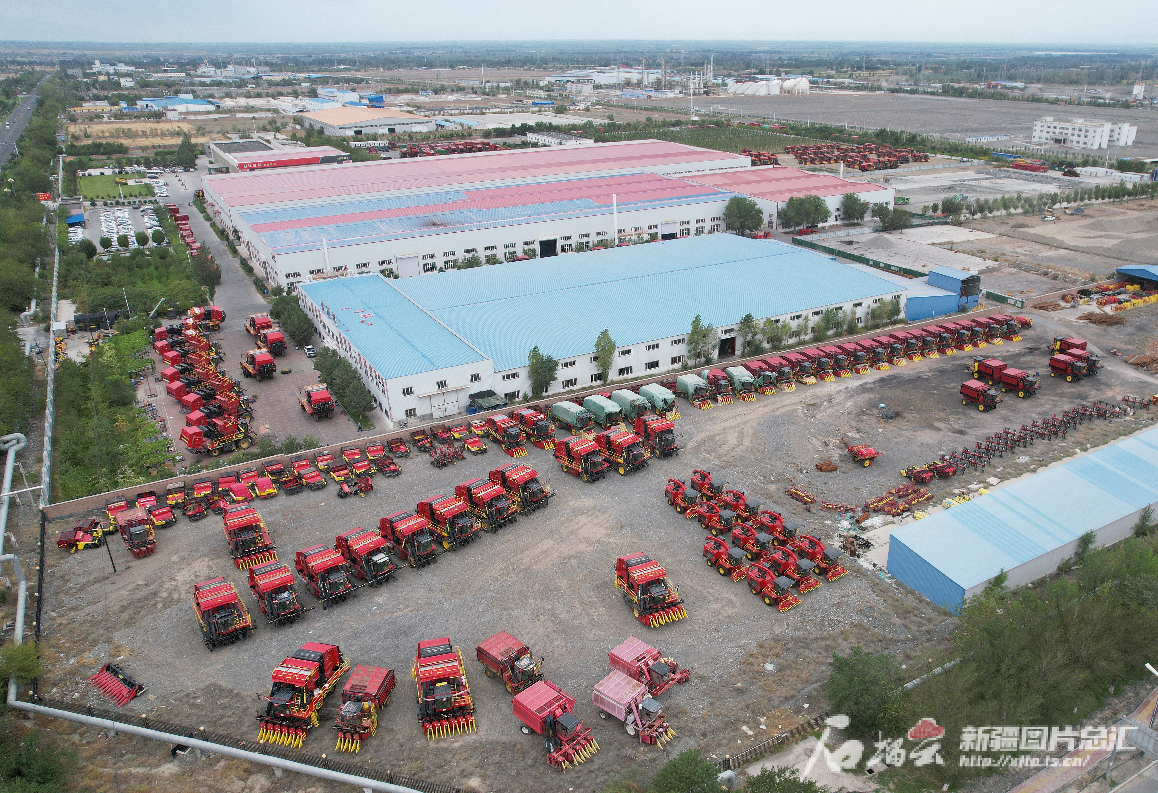 8月13日,俯瞰位于乌苏市的新疆钵施然智能农机股份有限公司(无人机摄)。