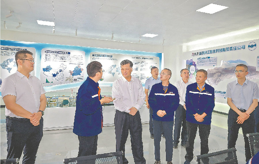 8月14日 ,自治区党委书记 、兵团党委第一书记 、第一政委 马兴瑞在巴楚县钒钛磁铁矿矿区 ,听取资源分布和企业参与 情况介绍 ,了解采 、选 、冶工艺流程和资源开发进展 。 石榴云\新疆日报记者 崔志坚 摄