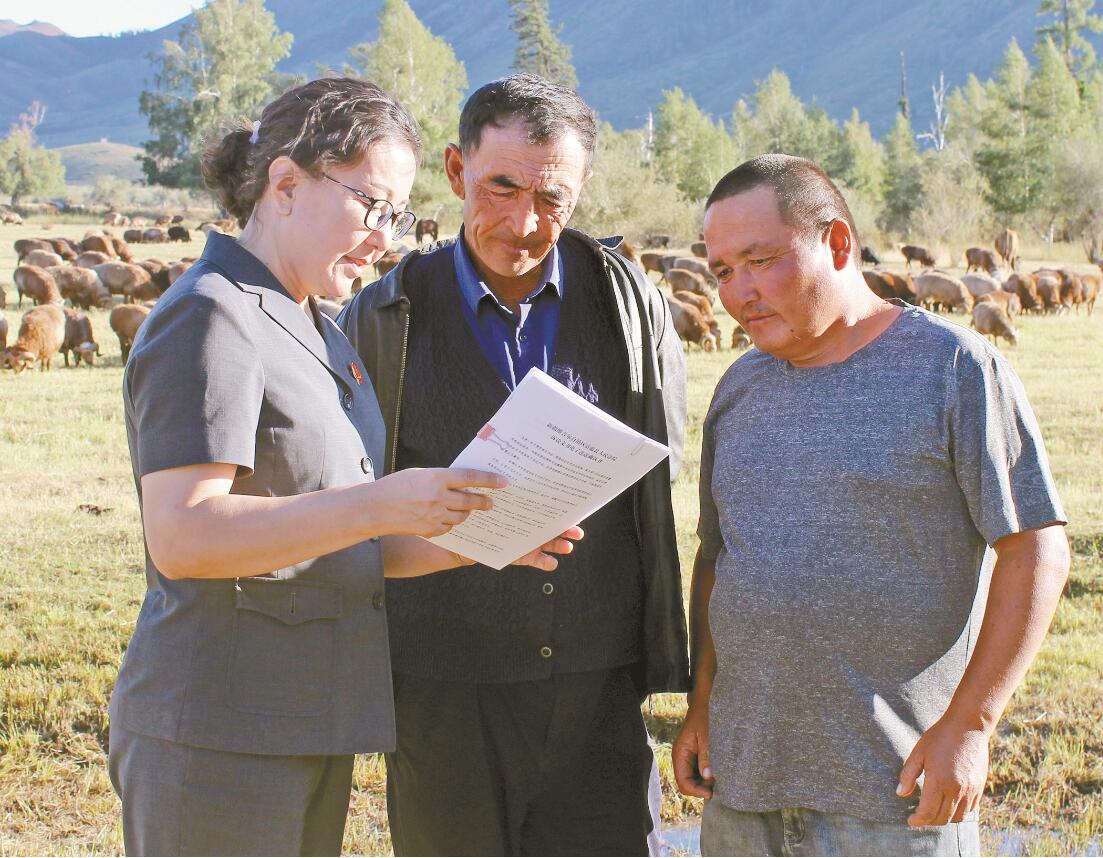 8月22日,富蕴县人民法院可可托海人民法庭法官深入辖区哈依尔特放牧点开展法治宣讲活动。法官结合实际案例,向牧民讲解与生活息息相关的法律知识,解答大家的法律咨询。 努热依·努尔木汗 摄