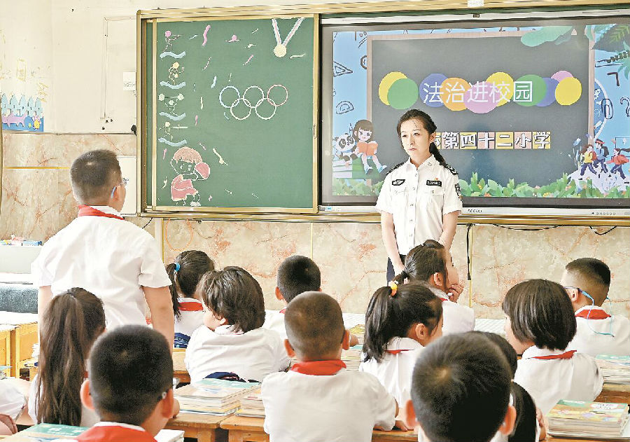 在乌市水磨沟区乐嘟嘟南湖新世纪幼儿园,乌市公安局特警八支队民警向小朋友们讲解了防溺水、防拐卖等知识;在乌市第40中学,乌市公安局达坂城区分局民警告诉同学们遇到危险时如何报警求助;在石河子高级中学,石河子市人民检察院检察官为老师们解读“一号检察建议”,宣讲未成年人被侵害强制报告等制度;在叶城县各中小学校,叶城县人民检察院12名担任辖区各中小学法治副校长的检察官,相继到校园开展以预防未成年人犯罪、国家安全等内容的“护蕾行动”宣传教育活动。