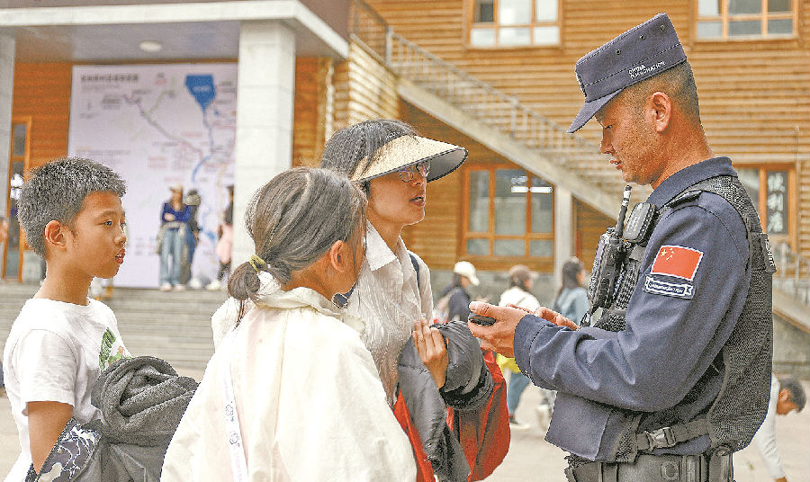 民警帮助游客寻找走失亲友。