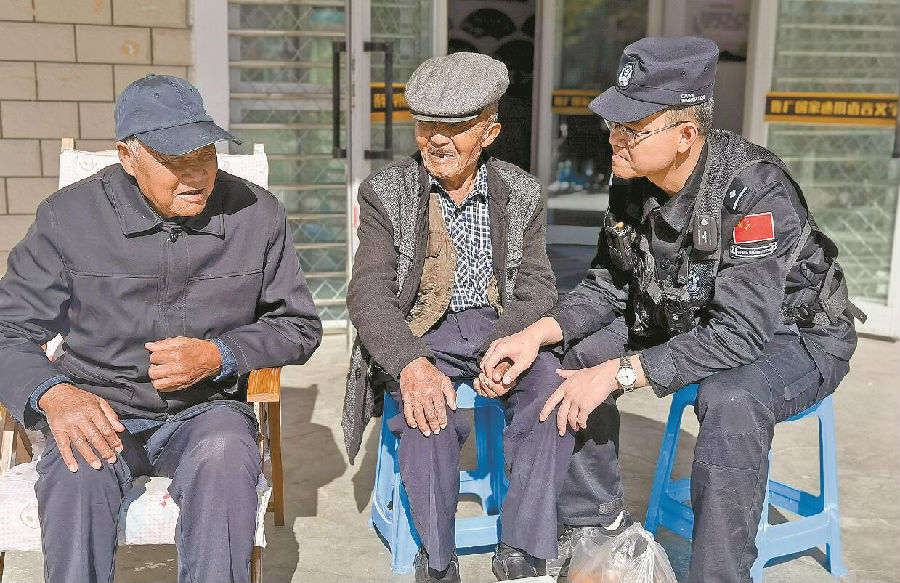 9月16日,新疆出入境边防检查总站哈密边境管理支队盐池边境派出所民警为辖区部分生活困难的老人送去慰问品。连日来,该所持续开展“金秋送温暖”活动,为辖区困难老人送去党和政府的关怀。 施志忠 摄