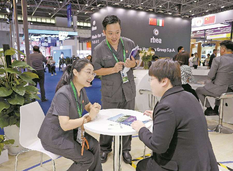 在中国国际消费品博览会上,海南第一涉外民商事法庭工作人员向企业介绍相关司法服务保障情况。 海南第一涉外民商事法庭供图