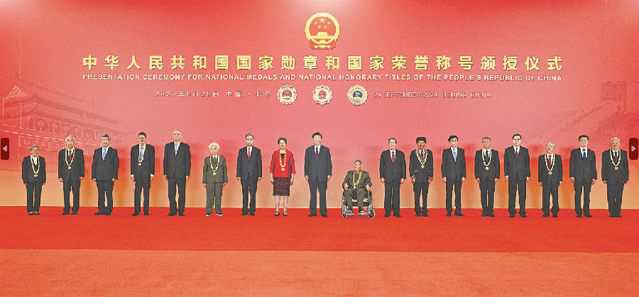 中华人民共和国国家勋章和国家荣誉称号颁授仪式在京隆重举行 习近平向国家勋章和国家荣誉称号获得者颁授勋章奖章并发表重要讲话 李强赵乐际王沪宁丁薛祥李希韩正出席 蔡奇主持