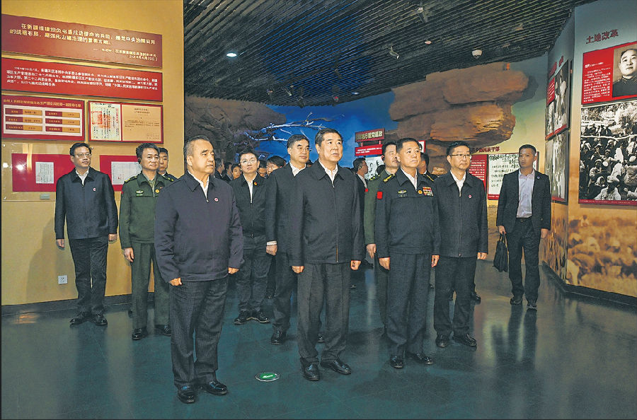 中央代表团首站来到新疆兵团军垦博物馆,听取兵团屯垦戍边的革命历史,详细了解兵团人在推动新疆发展、增进民族团结、维护社会稳定、巩固国家边防等方面作出的重要贡献。何立峰指出,要牢记习近平总书记的嘱托,感恩奋进,用好兵团精神宝贵财富,深入挖掘时代内涵,把红色资源利用好,把红色基因传承好,从兵团70年历史中汲取前进动力,激励干部职工扎根新疆、奉献边疆,作出新的更大贡献。