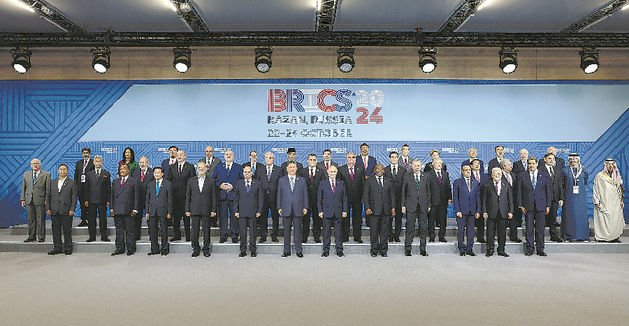 当地时间10月24日上午,国家主席习近平在喀山会展中心出席“金砖+”领导人对话会并发表题为《汇聚“全球南方”磅礴力量 共同推动构建人类命运共同体》的重要讲话。这是出席对话会的金砖国家及嘉宾国领导人或代表、国际组织负责人集体合影。