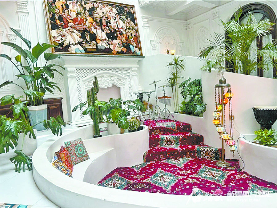 民宿装修之初,胡玉鹏拜访了喀什古城里的住户,看门窗的颜色、雕花,屋内摆什么样的沙发、挂什么样的窗帘,就连客厅桌子上摆放干果、糕点的水晶器皿他都一一模仿。“住在民宿,就是想有一种住在当地民居的感觉。”胡玉鹏说,“一千零一夜设计师”共9间客房,每间客房装修风格不同,但都会摆放美味的特色糕点。
