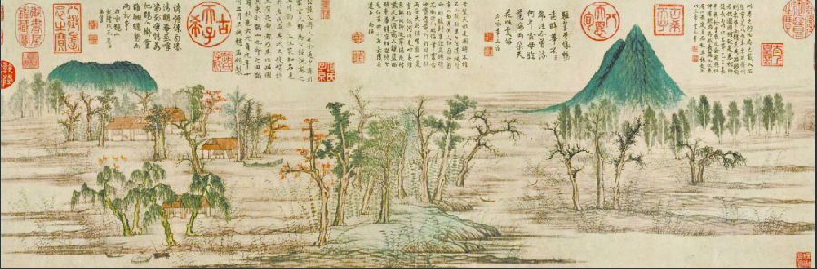 元代画家赵孟頫绘制的《鹊华秋色图》(局部)。