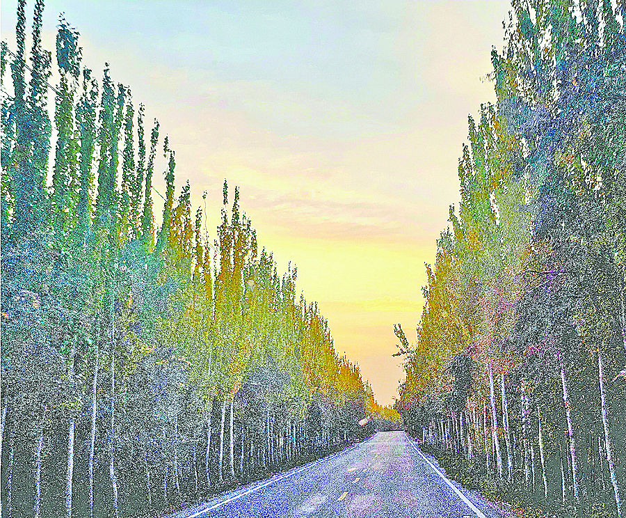 麦盖提县公路两旁,生态林形成绿色屏障。