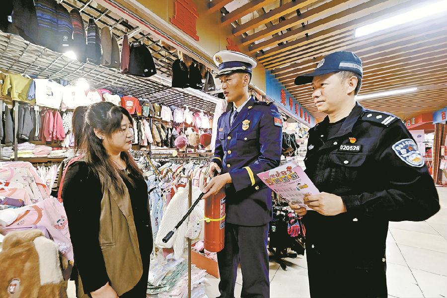 当日,乌鲁木齐市公安局米东区分局芦草沟派出所联合乌市消防救援支队米东区大队,对辖区商超开展消防安全检查,重点排查各场所灭火器配备、疏散通道设置、电器线路铺设等情况,并现场示范了灭火器用法。对于检查中发现的火灾隐患,检查人员指导责任人当场整改,现场整改不了的,依法责令限期整改。 石榴云/新疆法治报记者 单坤 摄