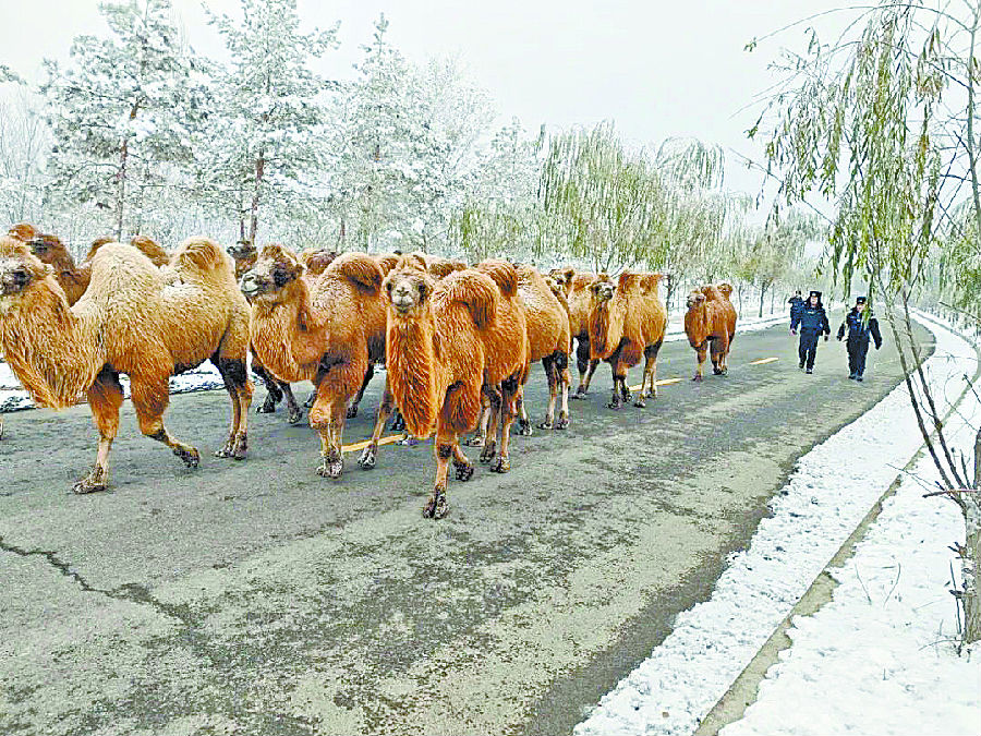 31峰骆驼“漫步”马路 民警帮忙找到主人
