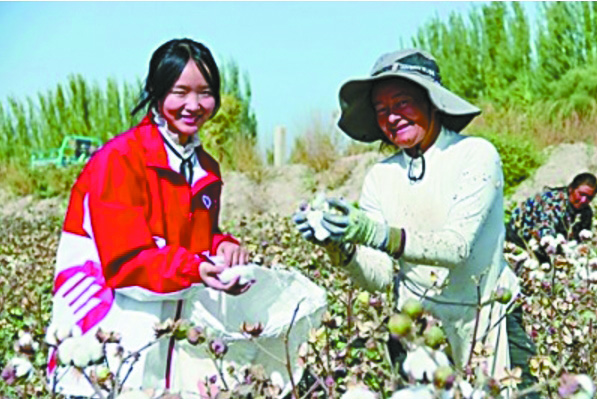 西部计划志愿者摘棉花助农。