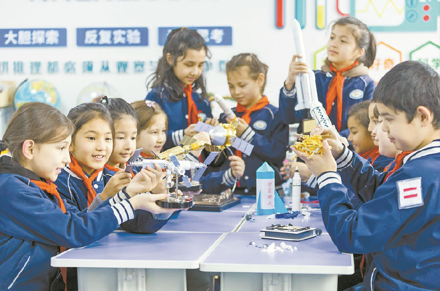 A+ | a12月11日,乌鲁木齐市天山区卫生健康委员会驻黑甲山街道后街社区邀请乌鲁木齐市第44小学学生来到社区,参加“探索科学奥秘 感受科技魅力 ”活动。在社区工作人员的引导下,孩子们学习航天科技知识、动手制作模型,激发了崇尚科学、探索未知的热情。 孙振嵩 摄