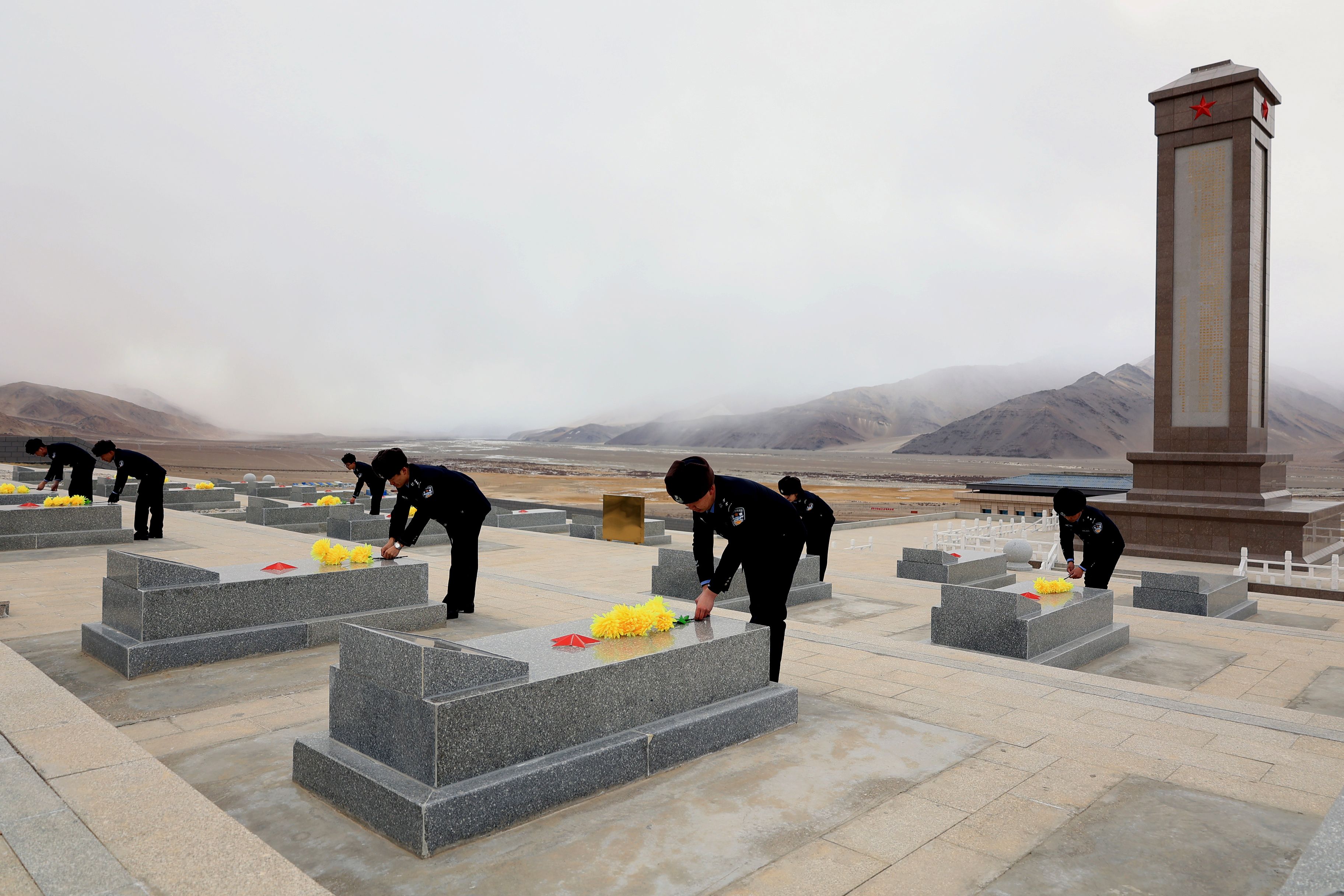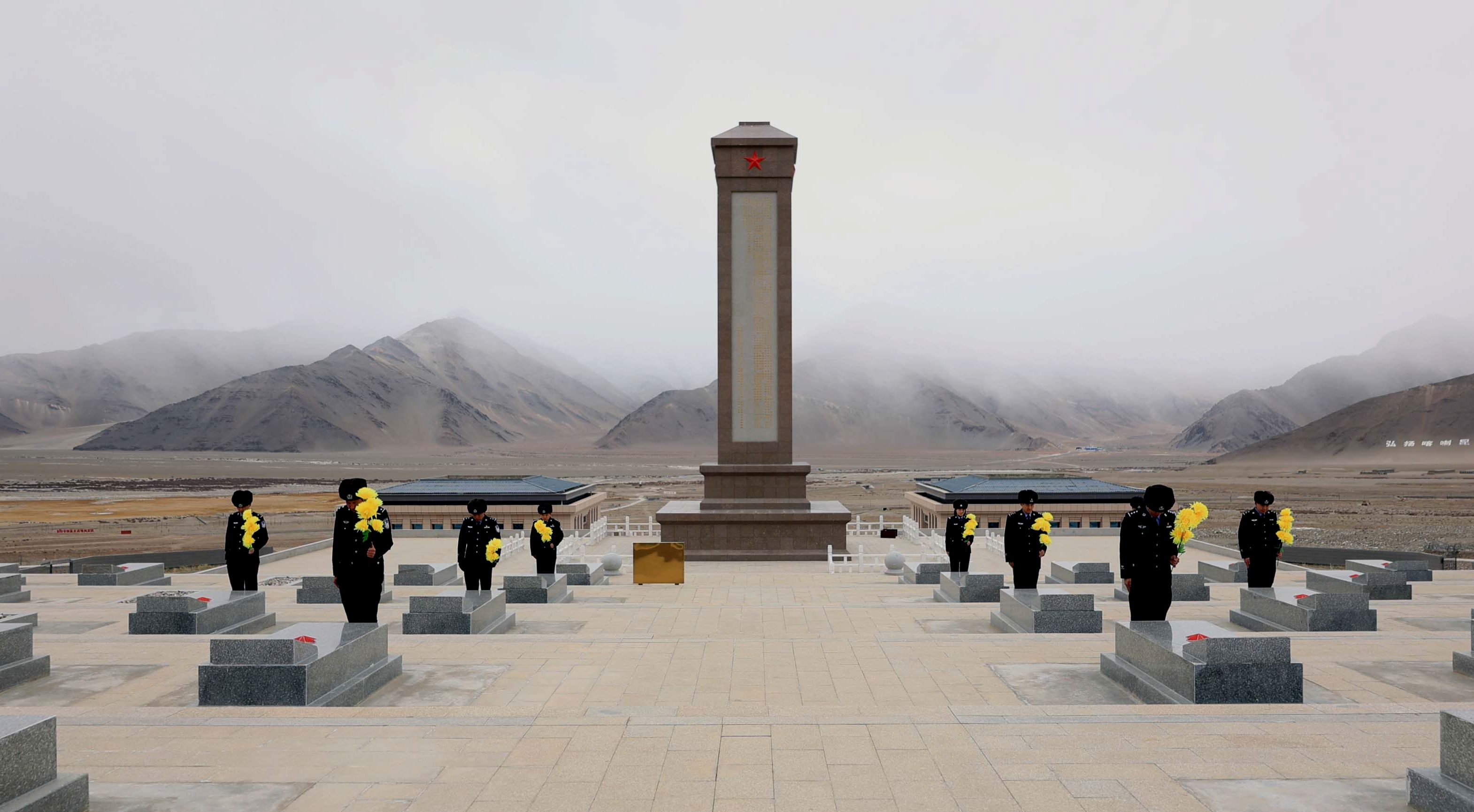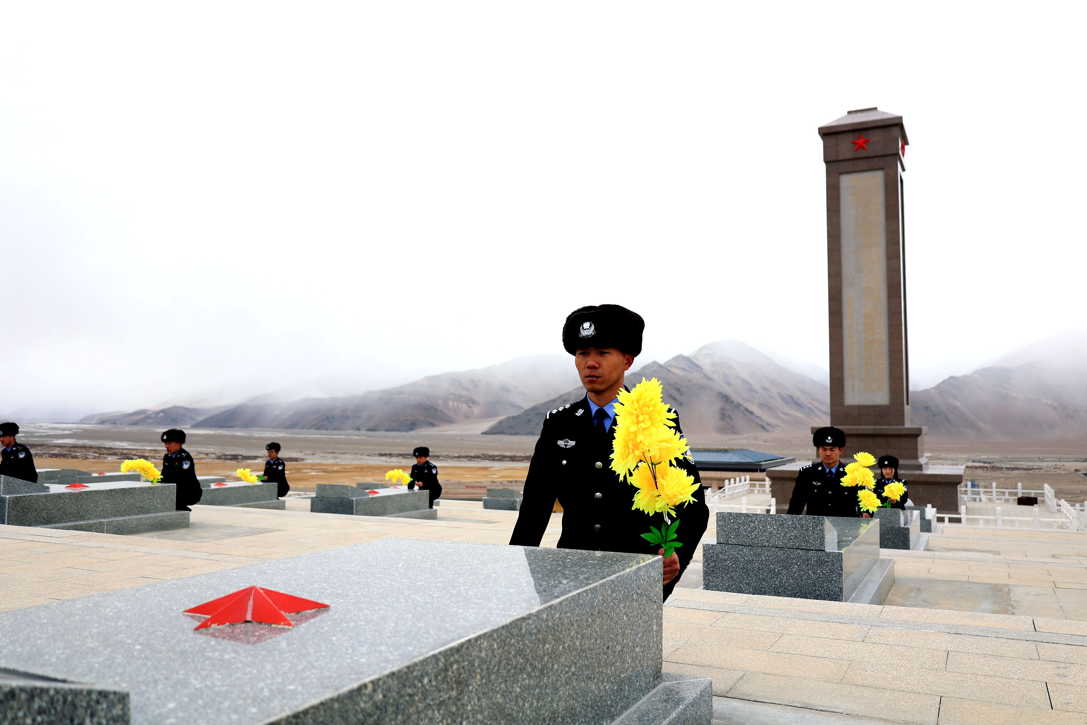 12月11日,在国家公祭日即将来临之际,新疆和田边境管理支队赛图拉边境派出所组织民警前往海拔4280米的康西瓦烈士陵园开展缅怀活动,向安葬在此的众多戍边英烈致以崇高敬意。