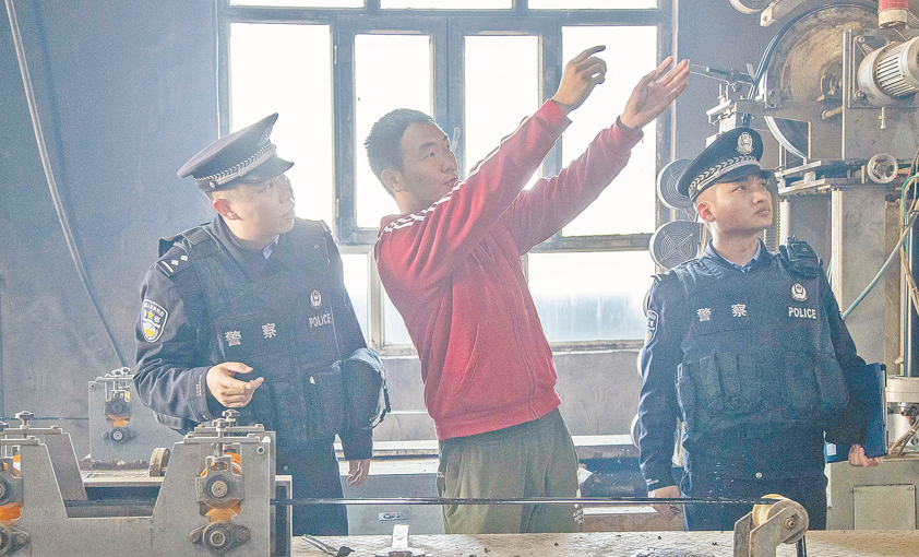 走访中,民警详细了解企业当前生产经营状况,听取企业负责人对公安机关惠民利企工作的意见建议,检查企业安全生产主体责任落实、生产现场安全管理等情况,严防各类事故发生。 王鹏飞 摄