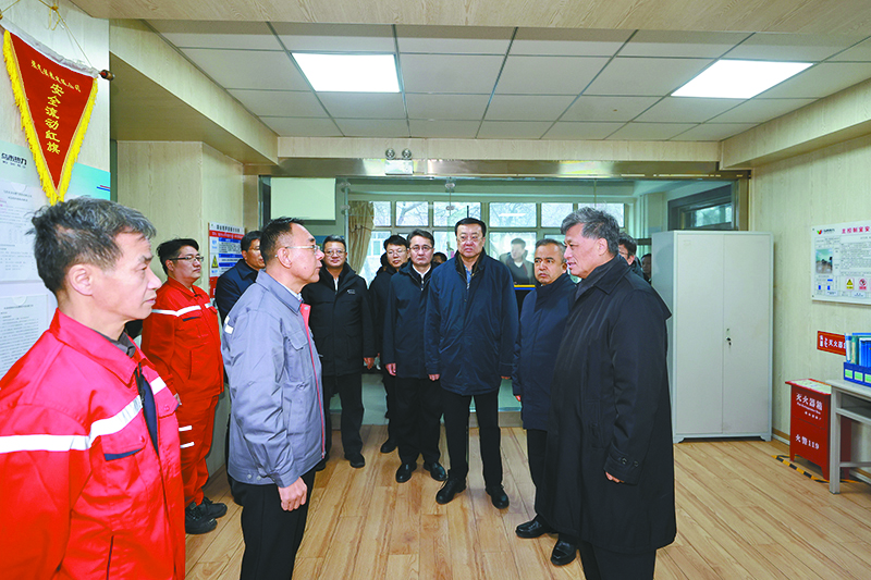 12月18日,自治区党委书记马兴瑞、自治区主席艾尔肯·吐尼亚孜深入乌鲁木齐供热企业调研并同有关方面座谈。这是马兴瑞、艾尔肯·吐尼亚孜在乌鲁木齐热力(集团)有限公司,察看设备运行情况,听取供热工作介绍。 石榴云/新疆日报记者 崔志坚 摄