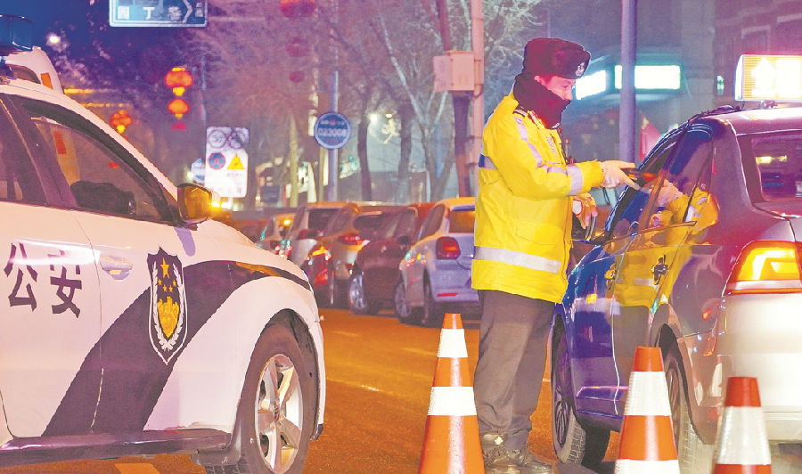 A+ | a连日来,乌鲁木齐市公安局交警支队持续开展酒驾醉驾专项整治行动,严查交通违法行为。图为1月8日夜间,乌市公安局交警支队高新区(新市区)大队民警在园丁巷附近路段设点查处酒驾。
