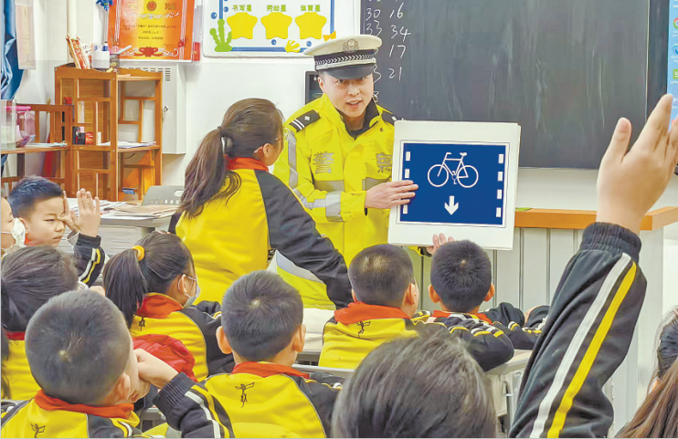 “同学们,谁能说一说,你在平时的生活和学习中都留意到哪些交通安全隐患?”民警发问。