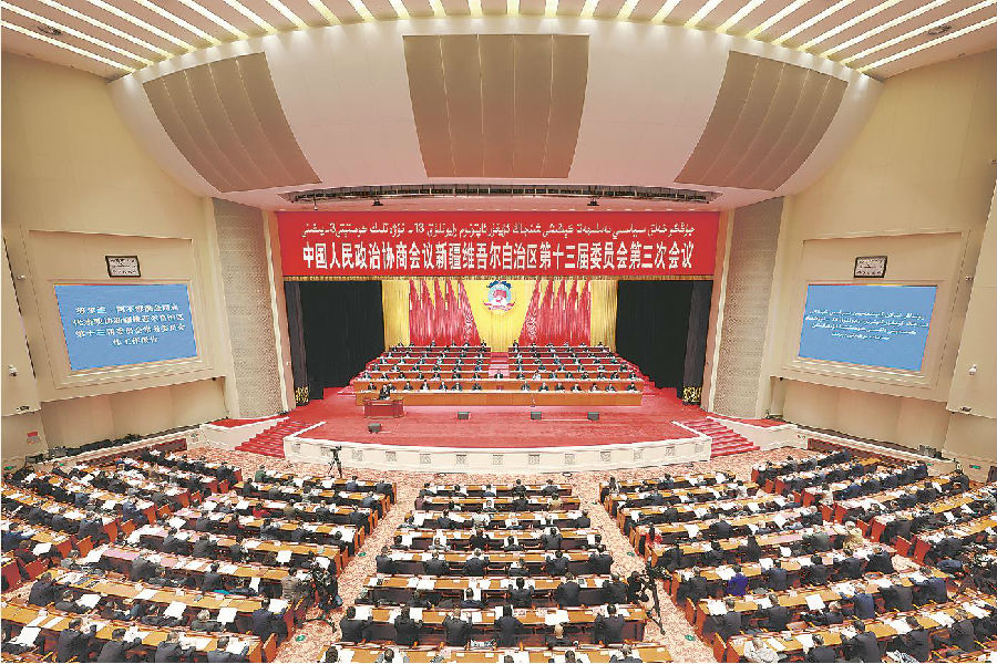 1月18日, 中国人民政治协商会议新疆维吾尔自治区第十三届委员会第三次会议在新疆人民会堂开幕。 石榴云/新疆日报记者 崔志坚 摄