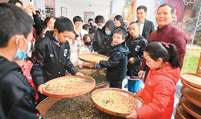台湾青少年在福州教育学院附属第二小学体验茉莉花茶制作技艺。 |