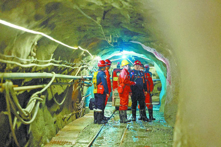 A+ | a2月14日,在矿井深处,矿企工作人员向新疆出入境边防检查总站阿勒泰边境管理支队加依勒玛边境派出所民警介绍设备安全运行情况。当日,该所对辖区矿企开展安全生产检查,重点检查施工人员是否规范作业,警示牌是否醒目、内容是否准确、位置是否合理等,进一步增强矿企安全责任意识,消除安全隐患。 王友波 金磊鑫 摄