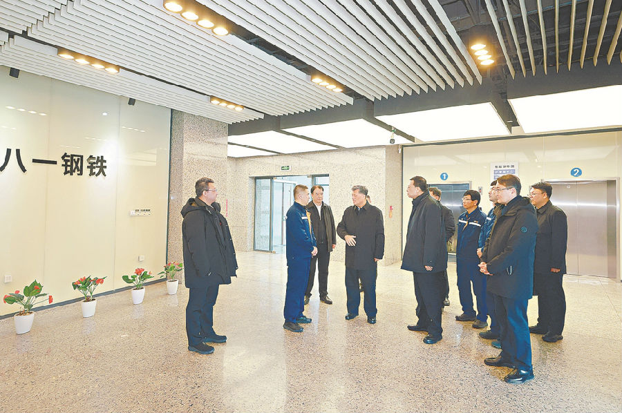 2月23日,自治区党委书记马兴瑞来到乌鲁木齐调研。这是马兴瑞在宝钢集团新疆八一钢铁有限公司,听取企业生产经营情况介绍。 石榴云/新疆日报记者 崔志坚 摄