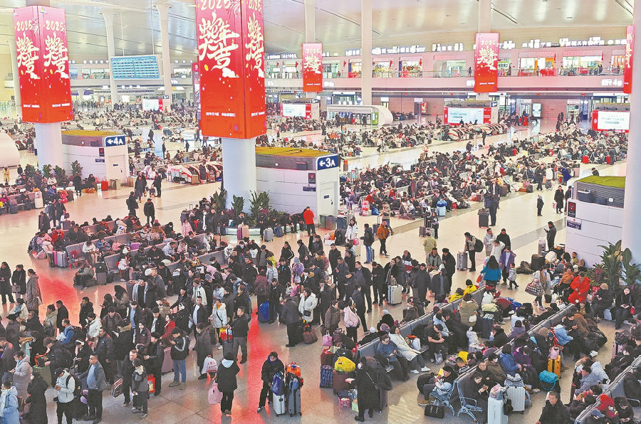 2月22日,旅客在乌鲁木齐站候车大厅候车。石榴云/新疆法治报记者 单坤 摄