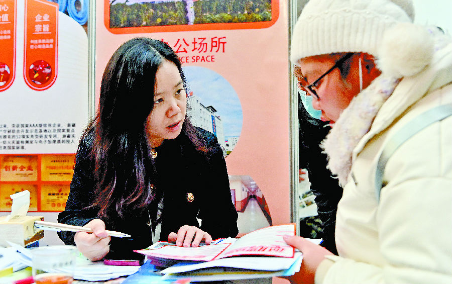 3月2日,招聘单位工作人员向求职者讲解岗位要求。