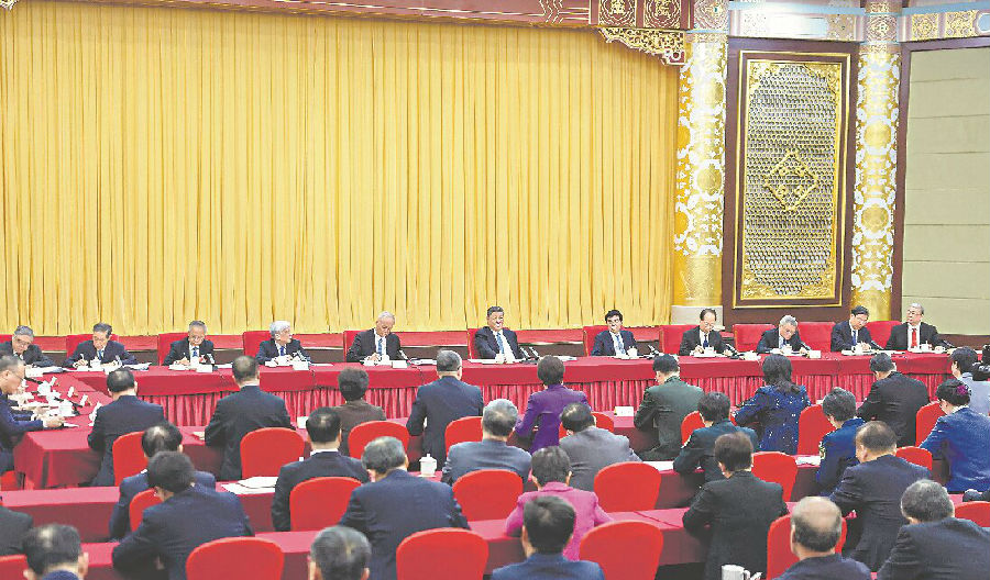 中共中央政治局常委、全国政协主席王沪宁,中共中央政治局常委、中央办公厅主任蔡奇参加看望和讨论。