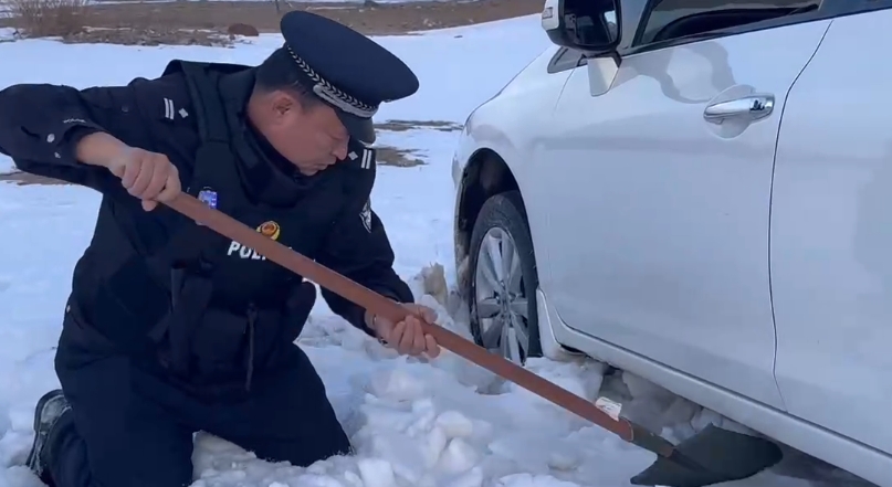 经了解,驾驶人因对路况不熟悉,操作不当陷入雪中。民警通过现场勘察后,决定先用铁锹将车身周围积雪清理干净,再借助牵引绳将车辆拖出。经过多次尝试调整,最终成功使车辆脱困。被困群众对察布查尔派出所民警的救援表示了衷心的感谢。为防止该群众再次陷入困境,民警将其护送至路况较好的道路后才放心离开。