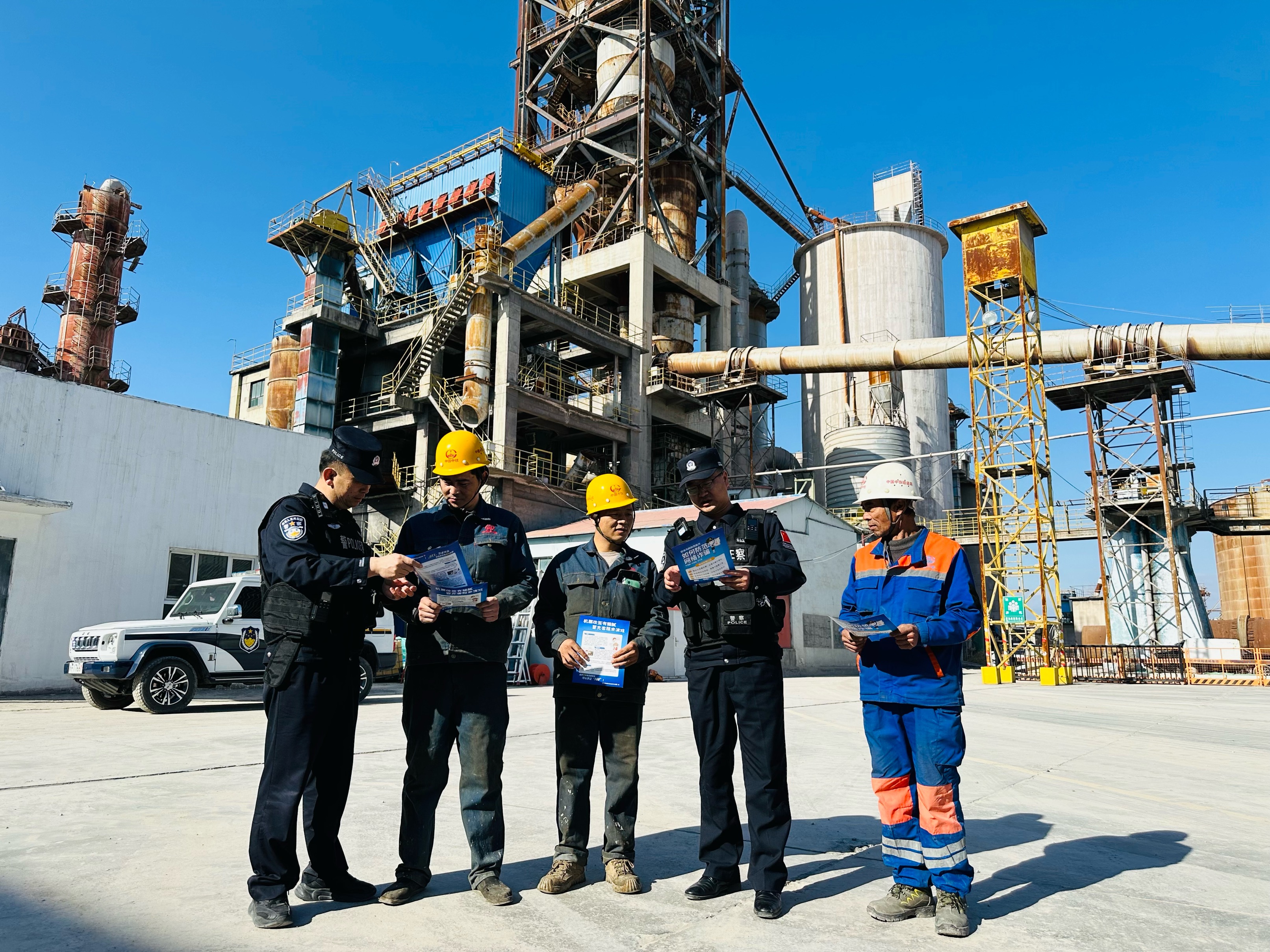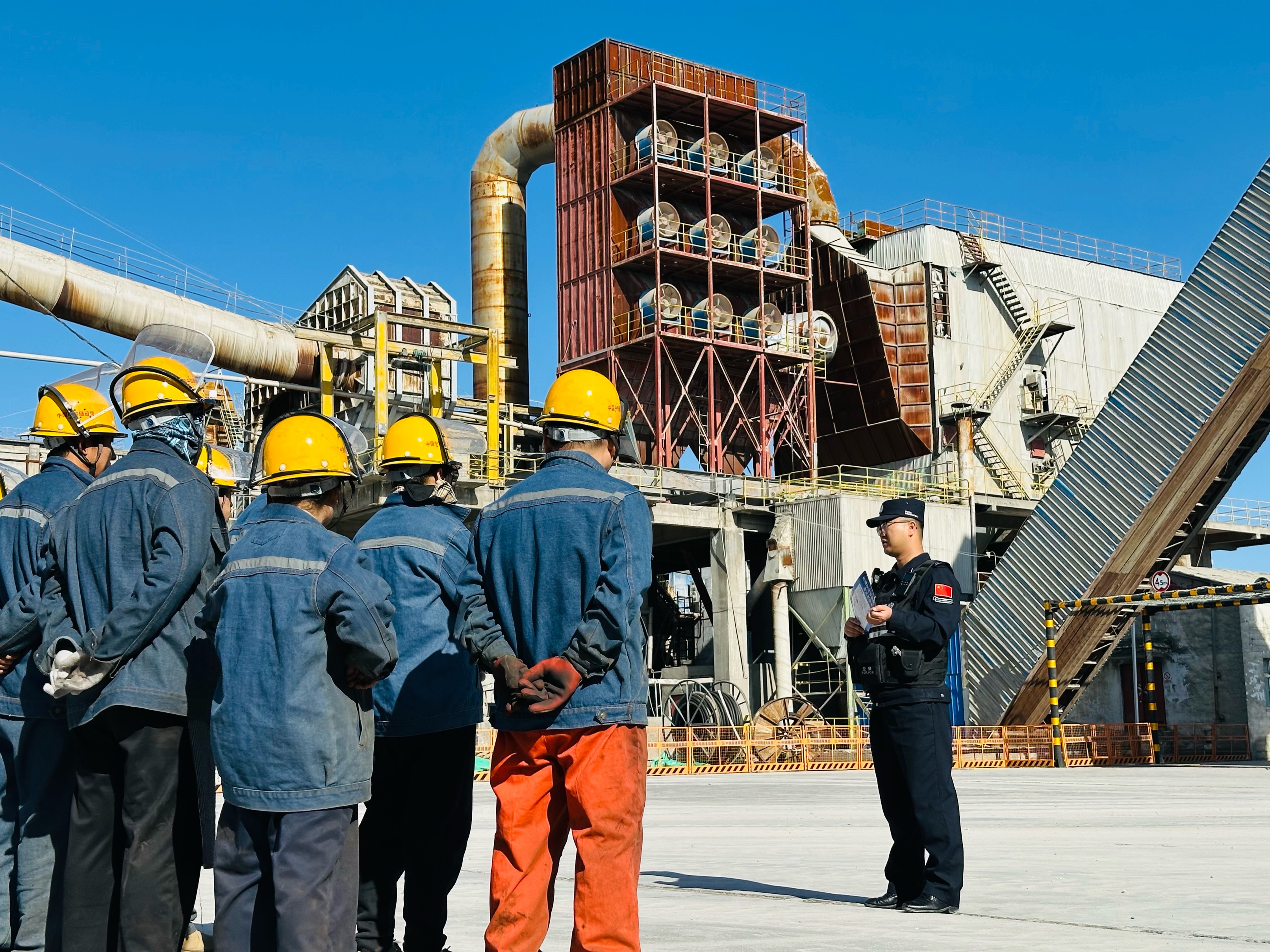 民警向职工进行安全生产相关法律知识宣传。