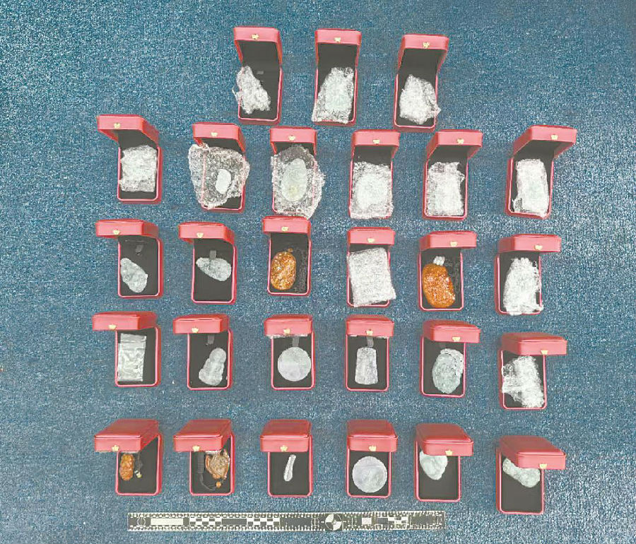 民警查获的部分涉案翡翠成品。 银迦勒 摄