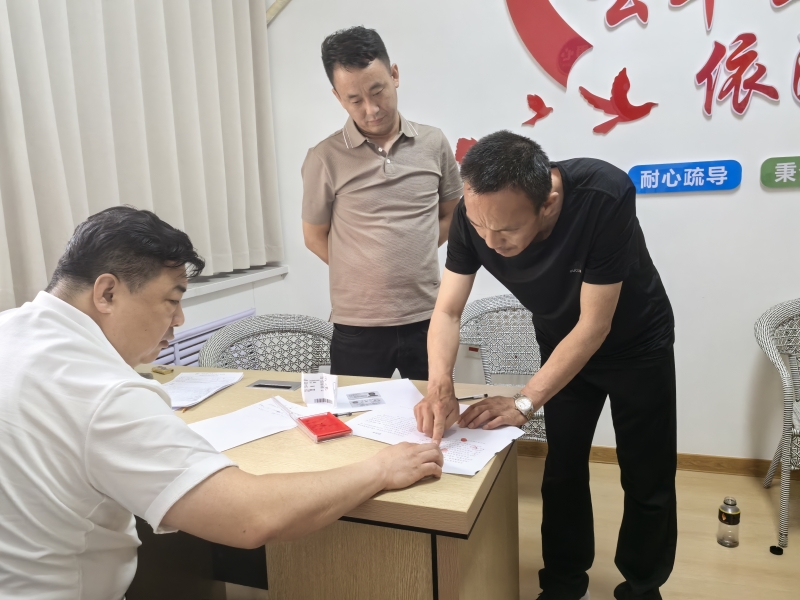 争议双方现场签订调解协议。伊州区委政法委供图